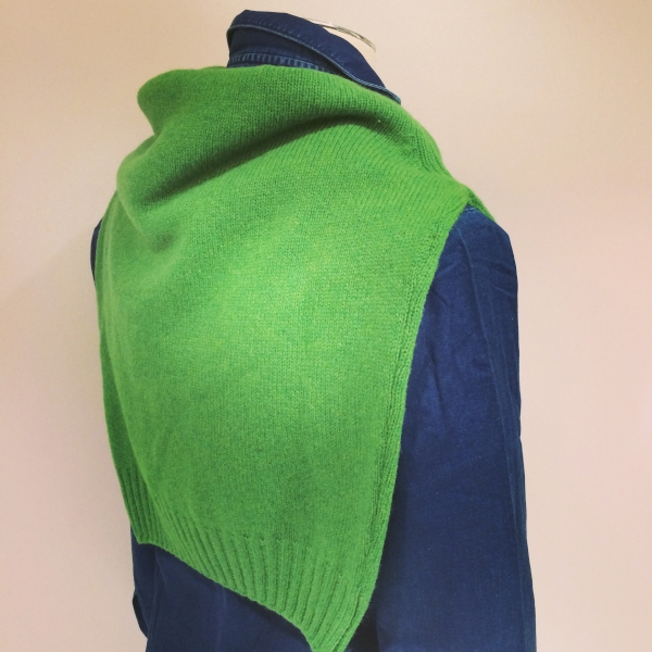 後ろから見ると綺麗なみどりのalteaニットがお洒落。