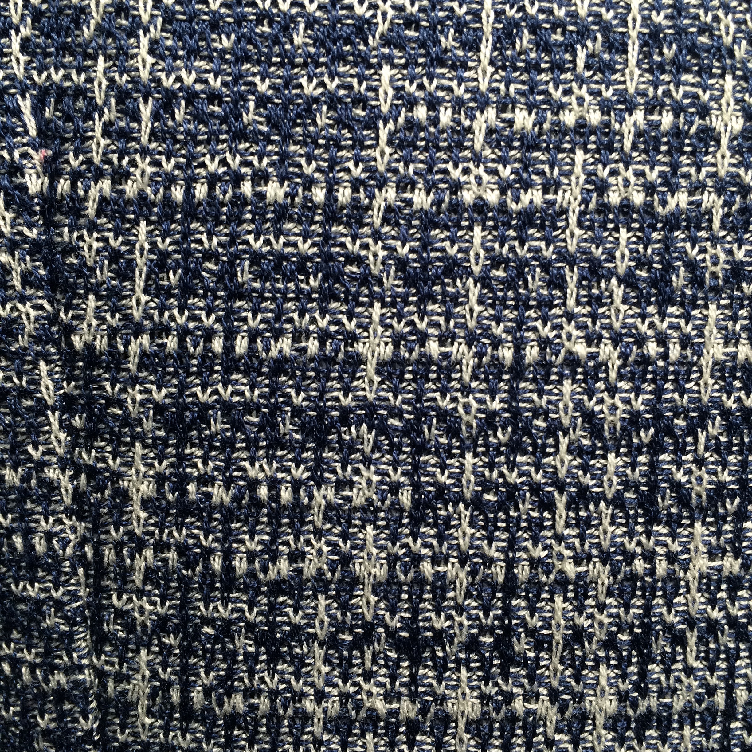 写真だとわかりづらいですが、トーンの違うネイビー2色で編まれています。