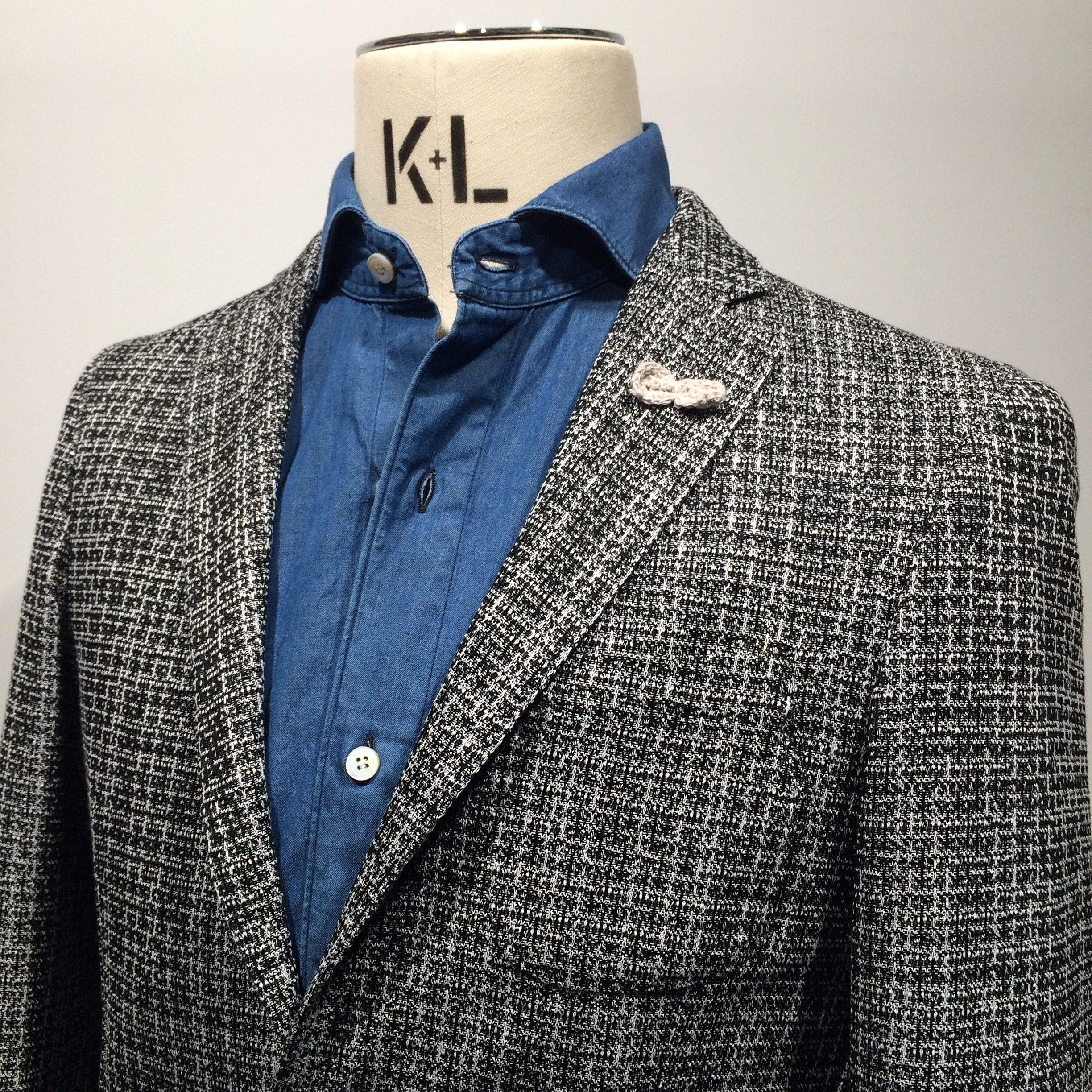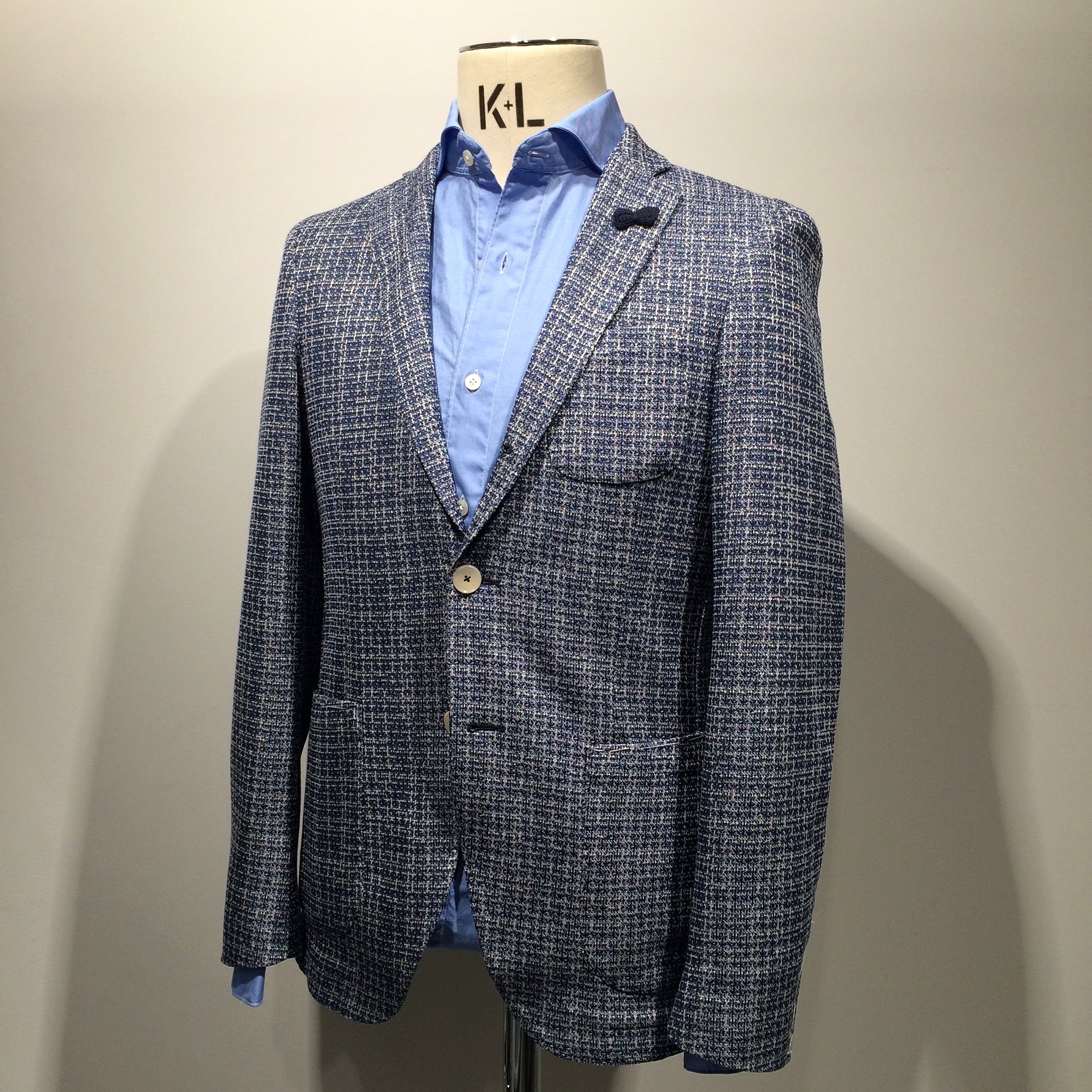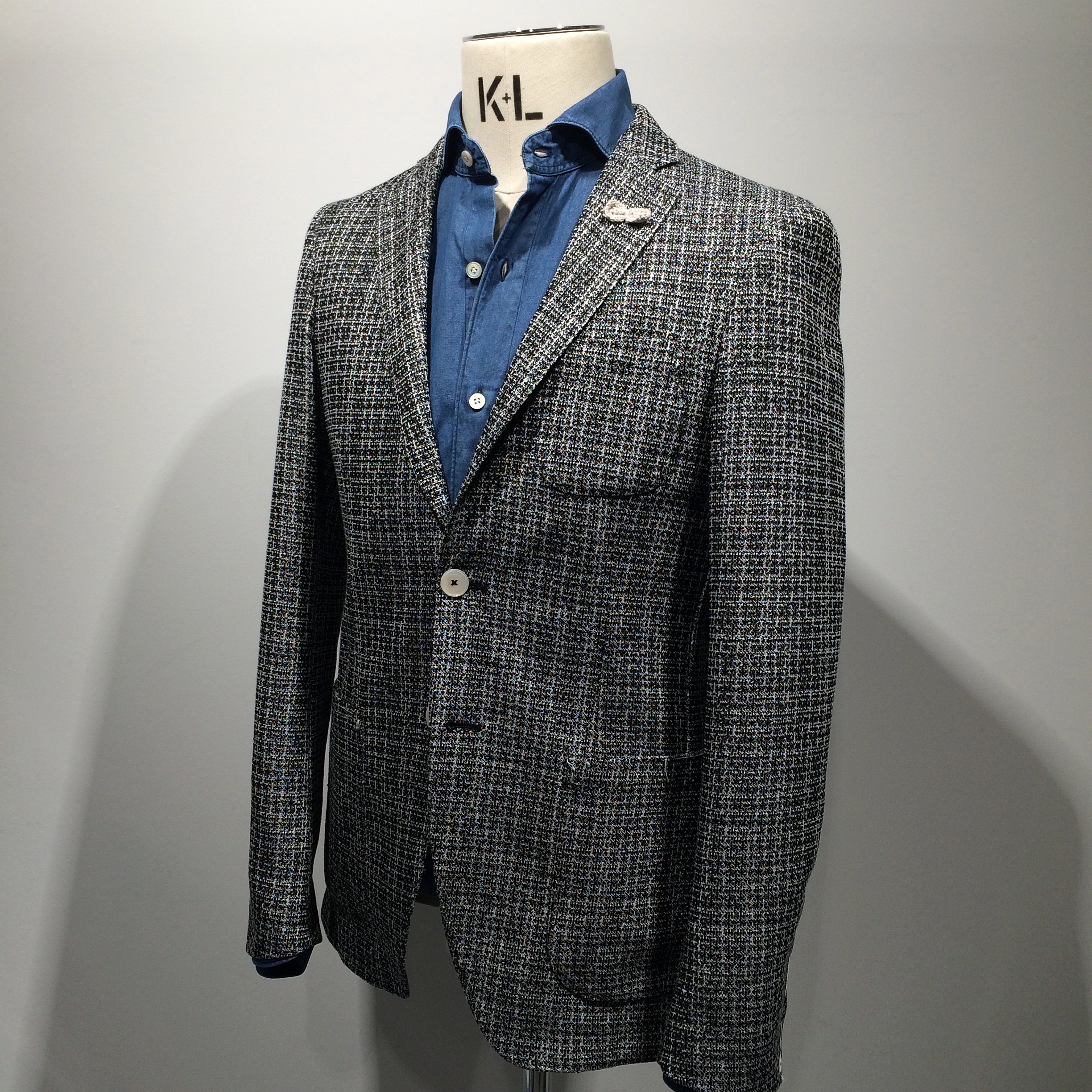 本日はメランジ調の生地が印象的な小洒落た段返り3つボタンのジャケット。