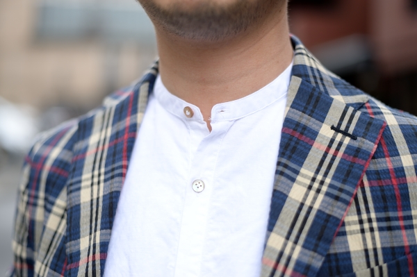 今回は陽気なマドラスチェックが目を引くシアサッカー素材のTHE GIGIジャケットを着用。
