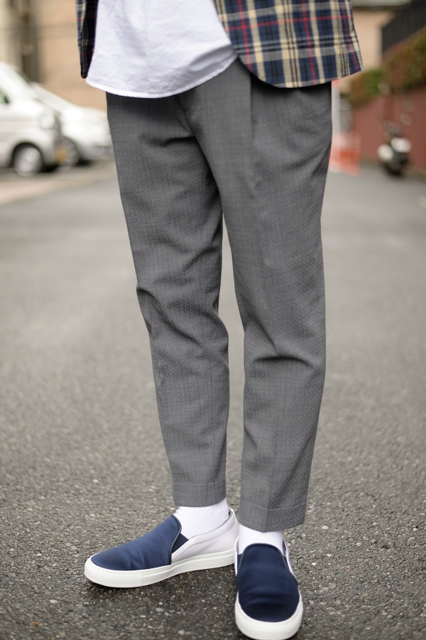 今回合わせた股上が深い2プリーツクロップド丈の