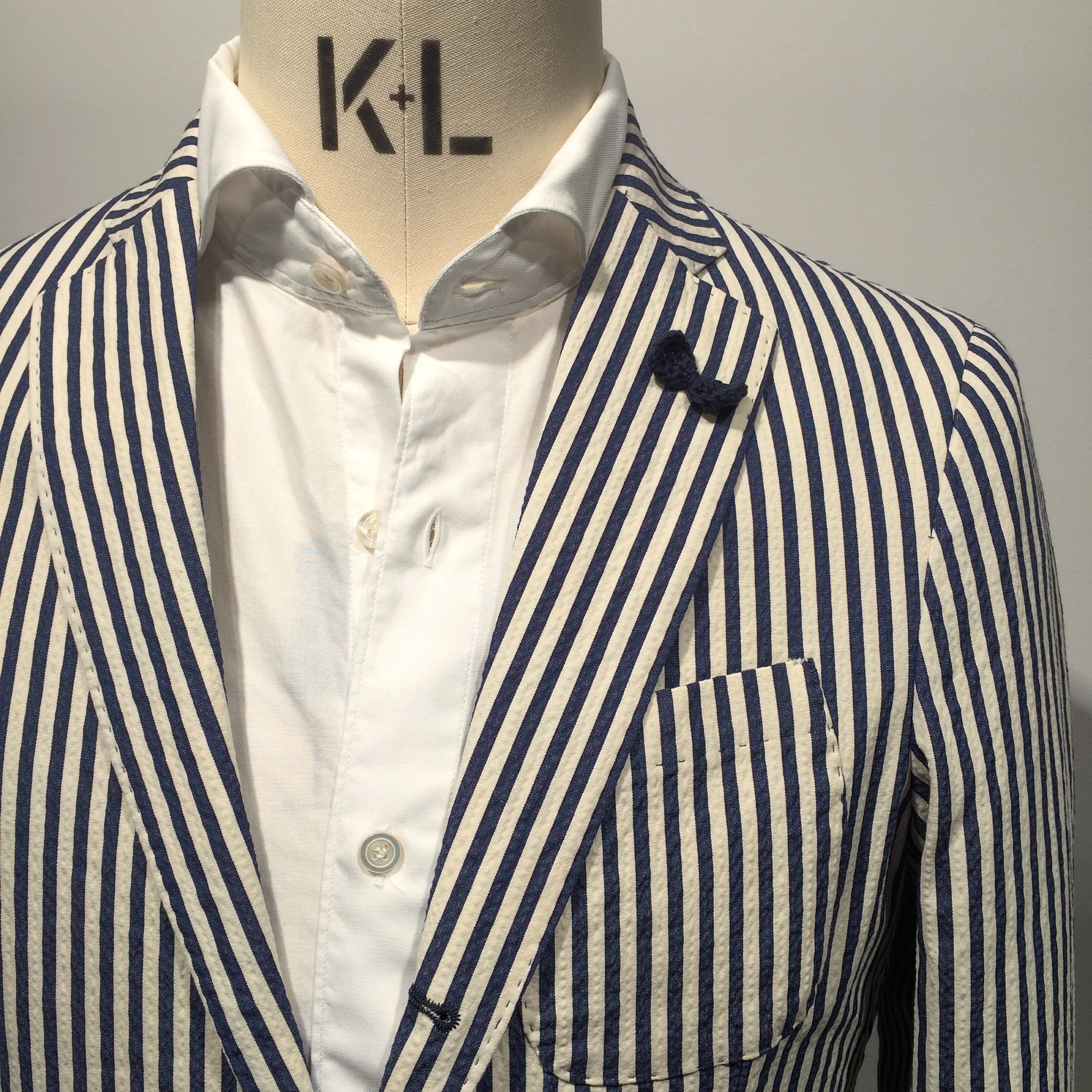 で、最後にご紹介となるのがこちらのシアサッカーのストライプジャケット。