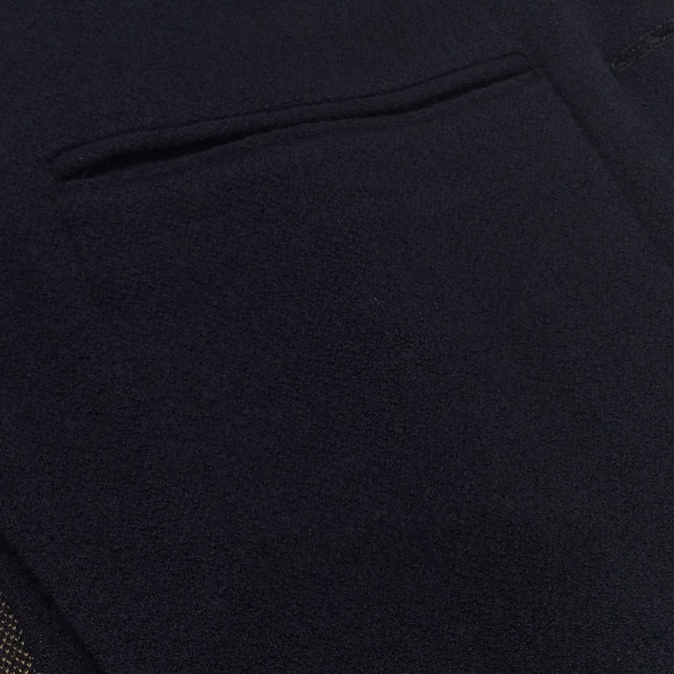 裏地をひっくり返すとネイビーとキャメルで織られた生地になっていて