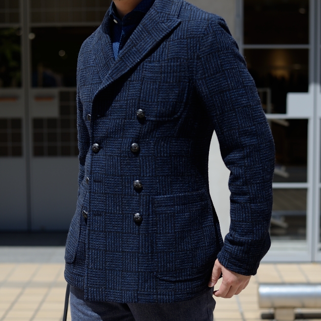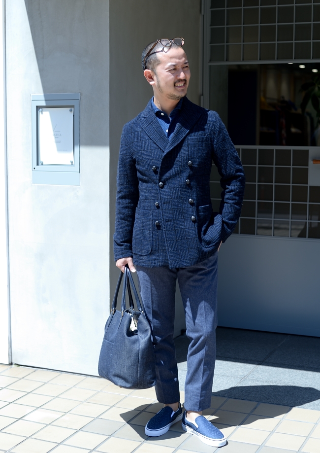 インナーも織のあるインディゴブルーのフィナモレを合わせて、