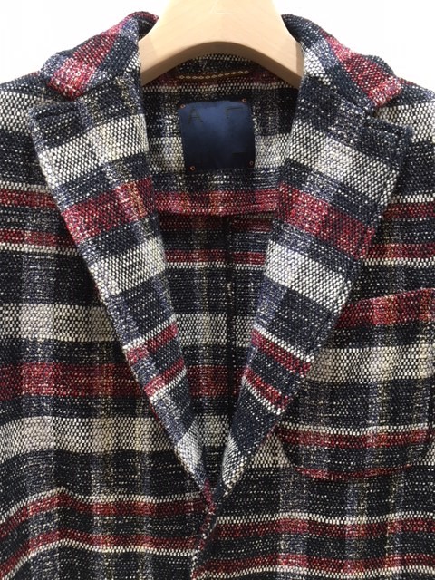 アルテア コッパー / 2Bメランジニットジャケット / ネイビー×レッドチェック / 1852381