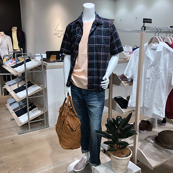 ゆったりとした”ゆるカワ”パンツのBERWICH”SAKE 1P”をセレクトし、全体的にリラックス感あるスタイリングに仕上げるのがASTILE house流です。